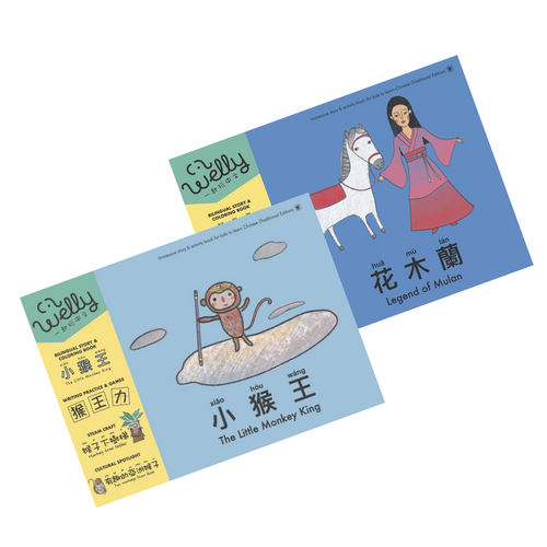 Welly Bilingual Activity Books Bundle (Set of 2): Legend of Mulan (花木蘭) & The Monkey King (⼩猴王)